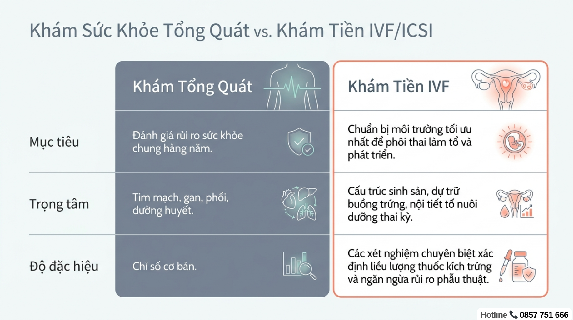 Kiểm tra sức khỏe định kỳ là điều mà nhiều người làm hàng năm. Tuy nhiên, kiểm tra định kỳ khác với các xét nghiệm cụ thể cần thiết để chuẩn bị cho IVF/ICSI. Hãy cùng khám phá sự khác biệt và những xét nghiệm nào cần thiết